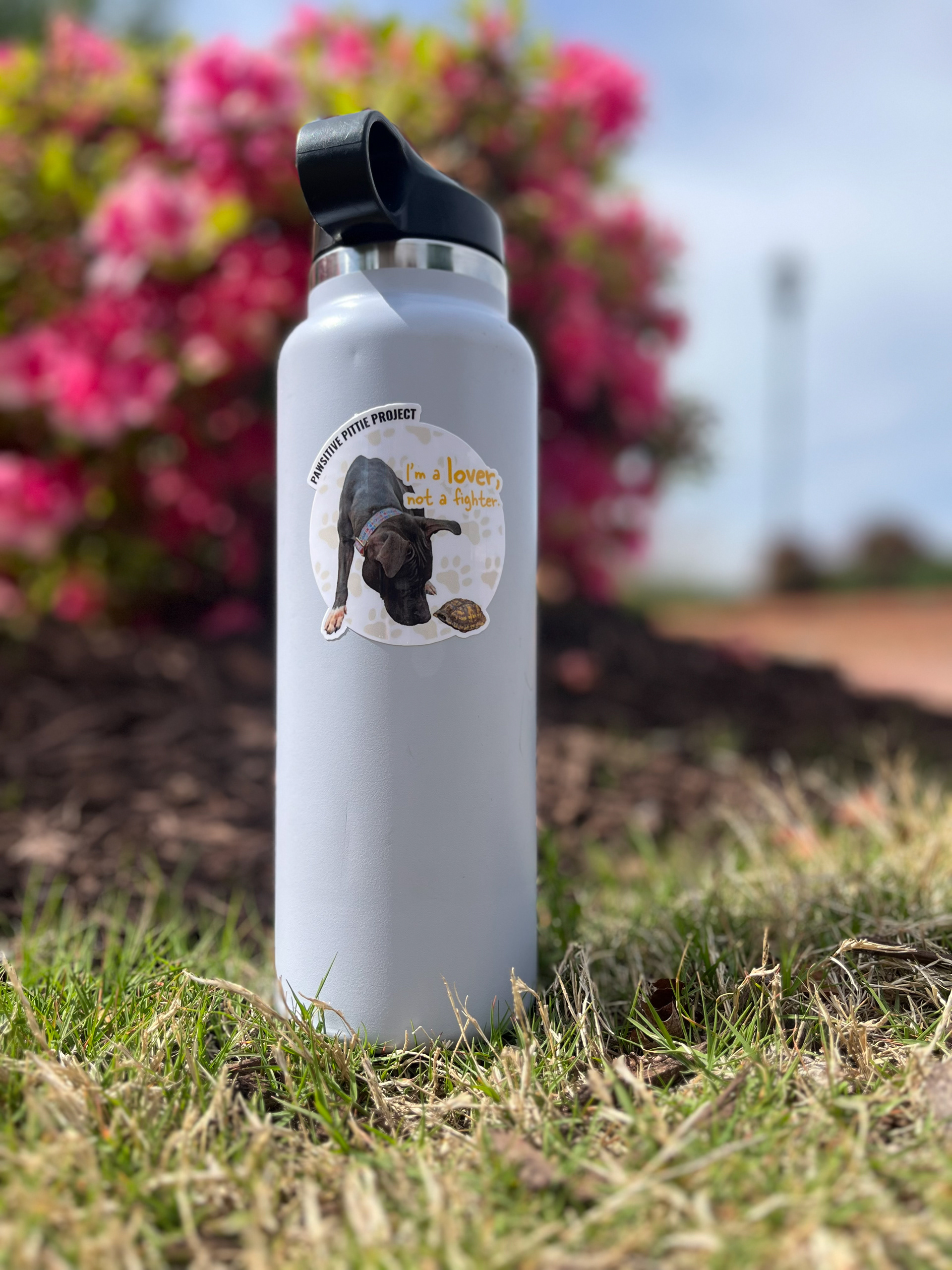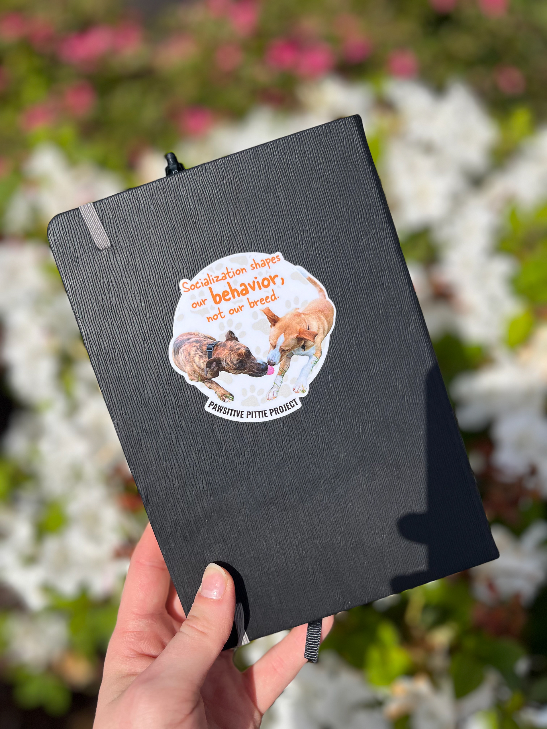 The second product is a series of six stickers, each featuring a different pit bull with a statement that challenges common misconceptions. Designed for everyday items like water bottles and laptops, these stickers help spread awareness through casual visibility.
